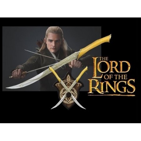 Dans l’univers du Seigneur des Anneaux, Legolas, prince du royaume elfique de la Forêt Noire, se distingue par son agilité, sa précision et son élégance martiale. Bien qu’il soit surtout connu pour sa maîtrise de l’arc, il manie également deux sabres elfiques d’une grande finesse au combat rapproché. Ces lames jumeaux, à la fois gracieuses et mortelles, incarnent la tradition des forges elfiques : un équilibre entre beauté et efficacité.