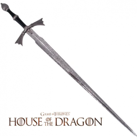 La série House of the Dragon rappelle ce contraste de caractère en opposant une Blackfyre “d’apparat royal” à une Dark Sister plus élancée. Pour l’écran, les accessoiristes ont recherché une crédibilité historique : proportions réalistes, garde simple, manche gainé, et un rendu d’“acier valyrien” obtenu par un travail de motif de lame (type damas pour le prop) afin d’éviter l’effet trop fantaisiste. Notre reproduction s’inscrit dans cette ligne : une géométrie fine, des reflets sobres et une patine qui souligne le fil sans clinquant.