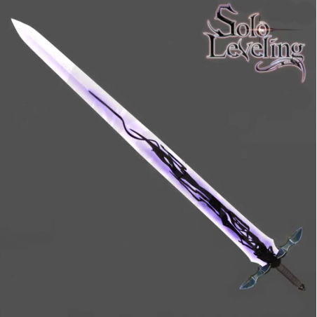 Dans l’univers de Solo Leveling, cette lame est associée à Baran, Monarque des Flammes Blanches et Roi des Démons. Visuellement, l’arme se reconnaît à sa garde courbée vers le bas et à son long fil clair traversé d’une ligne noire centrale. On la voit d’abord avec une teinte bleutée et des garnitures claires lorsqu’elle est maniée par Baran ; plus tard, lorsqu’elle passe entre les mains de Jin-Woo, la poignée et la garde s’assombrissent et la lame prend un éclat qui tire vers le violet, comme si la lumière changeait d’allié. Cette évolution chromatique est devenue un marqueur fort de l’arme dans la série et ses déclinaisons médiatiques.